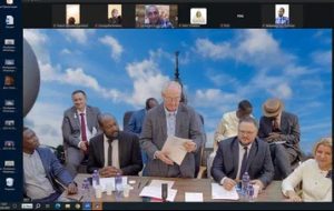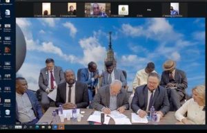 В пленарной части телемоста в прямом эфире состоялось подписание Меморандума о сотрудничестве между факультетом глобальных процессов МГУ имени М.В.Ломоносова,Государственным университетом Ассана Сека(Сенегал, город Зигиншор) и Российско-Африканским клубом МГУ имени М.В. Ломоносова.